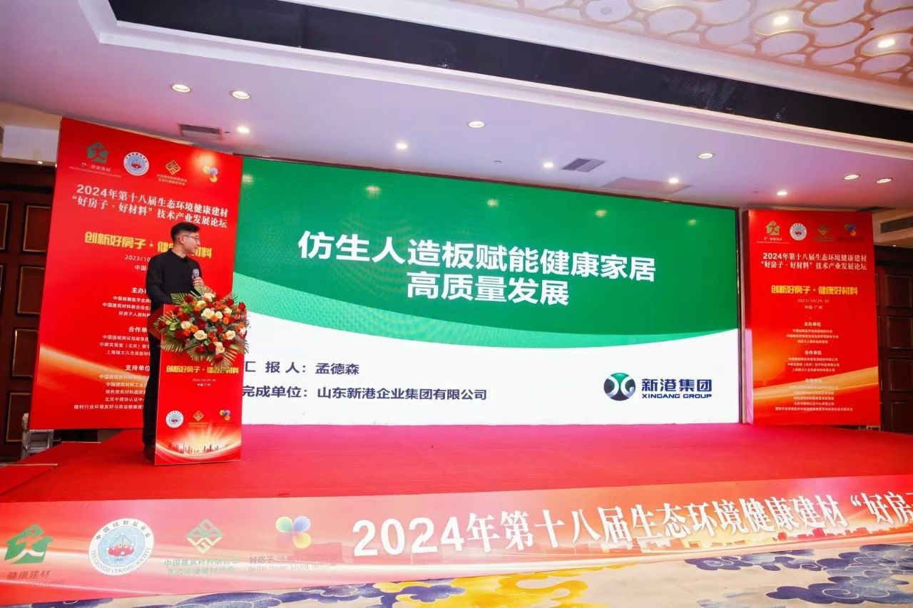 論壇現場,新港集團研究院作了《仿生人造板賦能健康家居高質量發展》報告分享。新港仿生膠打破了“無醛不成膠”的傳統膠接模式,在刨花板、超薄纖維板和膠合板的應用中走向成熟。作為家居守護者,新港集團深耕環保家居領域,前瞻性地輸出環保、高品質的家裝產品,積極跟隨市場發展的腳步,致力于為每位消費者提供健康的居家生活,成就綠色環保的家居未來。