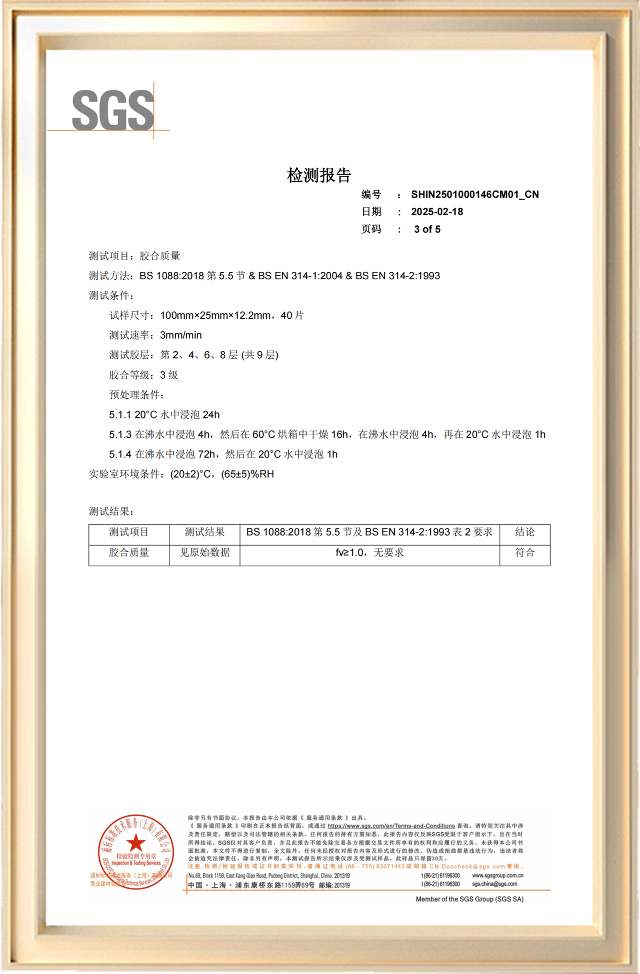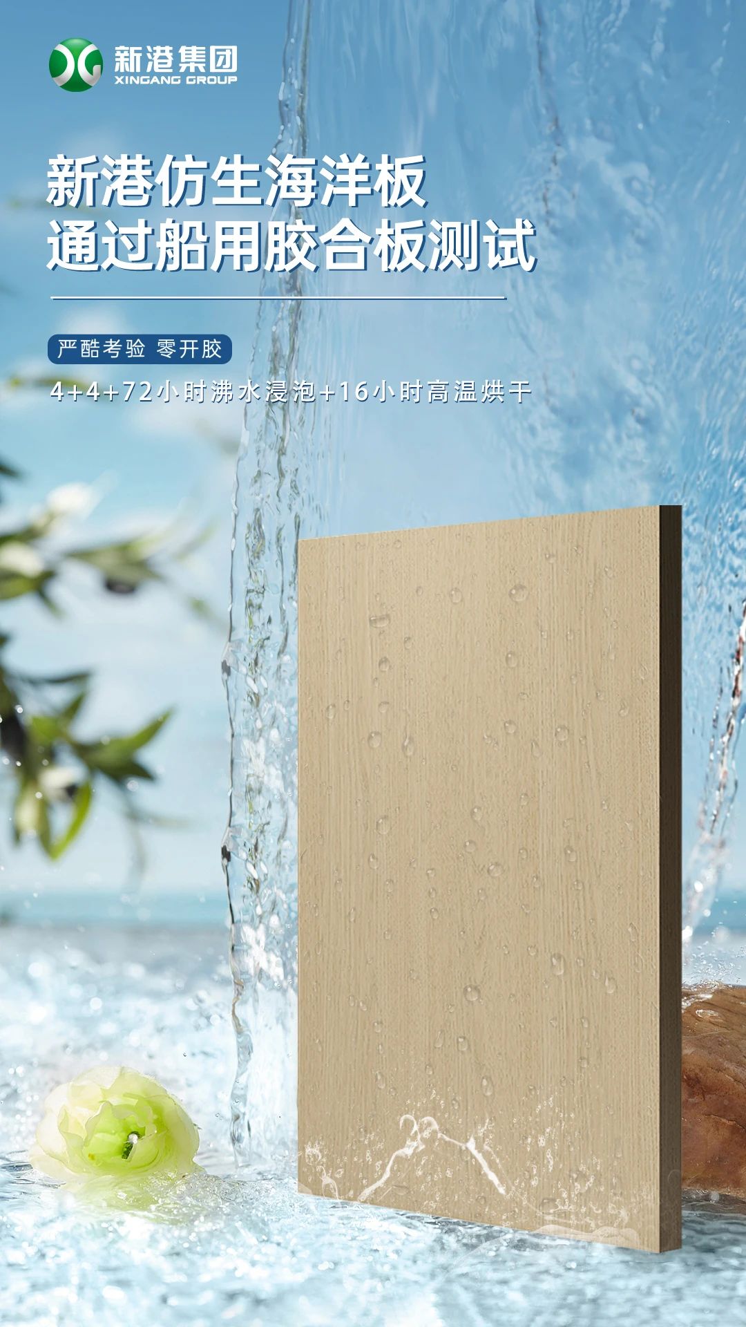 新港仿生海洋板成功通過船用膠合板測試(SGS BS1088),滿足家居板材防水性和耐候性的極致要求,成為國內少數達到該標準的板材品牌。
