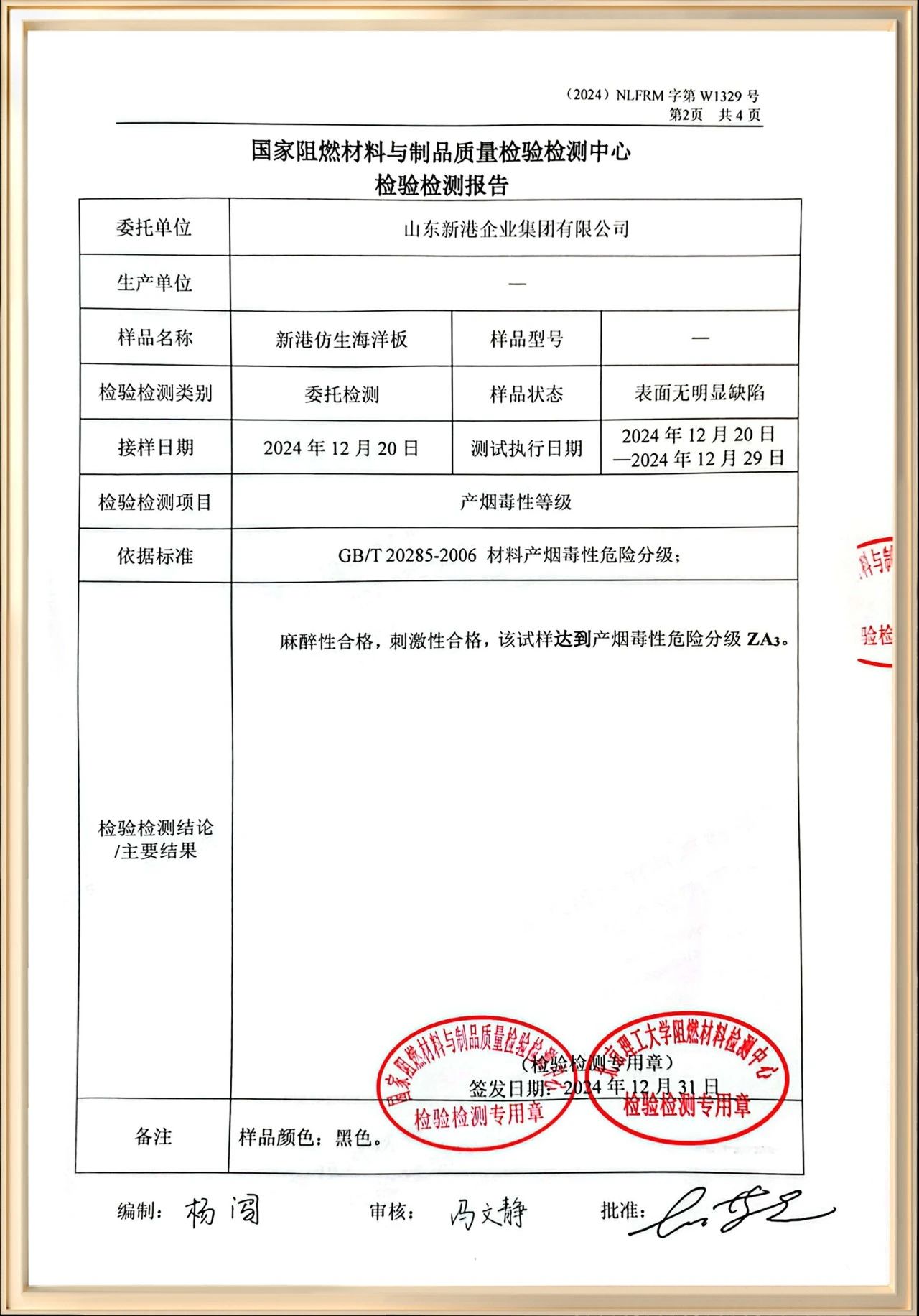 當發生火災,新港仿生海洋板燃燒時的煙霧對人體無害,檢測達到ZA3準安全級。給火災逃生爭取較多時間,減少被煙毒傷害的風險。