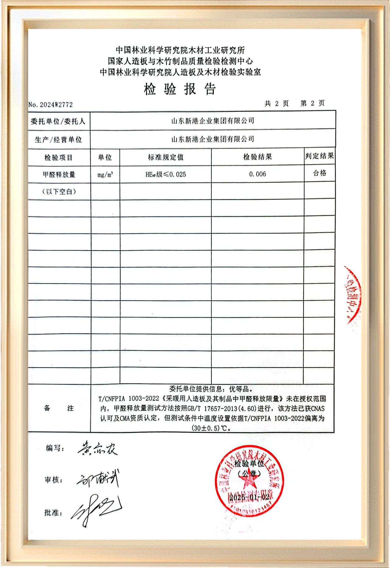 新港仿生海洋板既實現了新港仿生綠色膠黏劑的全綠色合成,又實現了HENF采暖級環保,甲醛釋放量低至0.006 mg/m3,達到采暖用人造板及其制品中甲醛釋放限量最高標準,真正做到無醛添加,并且苯、甲苯、二甲苯和TVOC釋放量均符合國家標準,已通過孕嬰網認證,孕婦和兒童可放心使用。