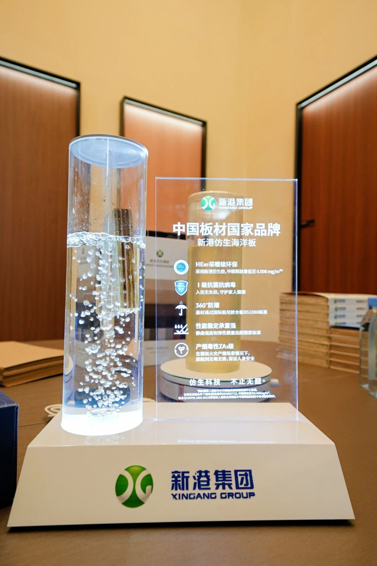 在眾多期待下,板材界的“黑科技”——新港仿生海洋板驚艷亮相展會現場。“超無醛、耐潮濕,抗腐蝕”,憑借獨一無二的仿生科技,新港仿生海洋板帶來了前所未有的卓越性能,與仿生F-LSB、仿生超薄纖維板,達成“三板合一”創舉,實現全系產品的仿生貫通。