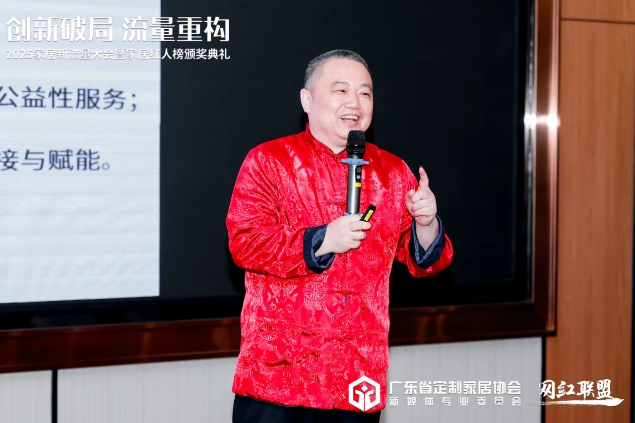 廣東省定制家居協會秘書長曾勇在致辭中深情回顧與新港的深度合作:“作為環保板材領域的標桿企業,新港集團始終以技術創新驅動行業發展。期待未來與更多像新港這樣的優質伙伴攜手,構建行業正能量傳播矩陣,重塑消費者對定制家居的信任基石。”