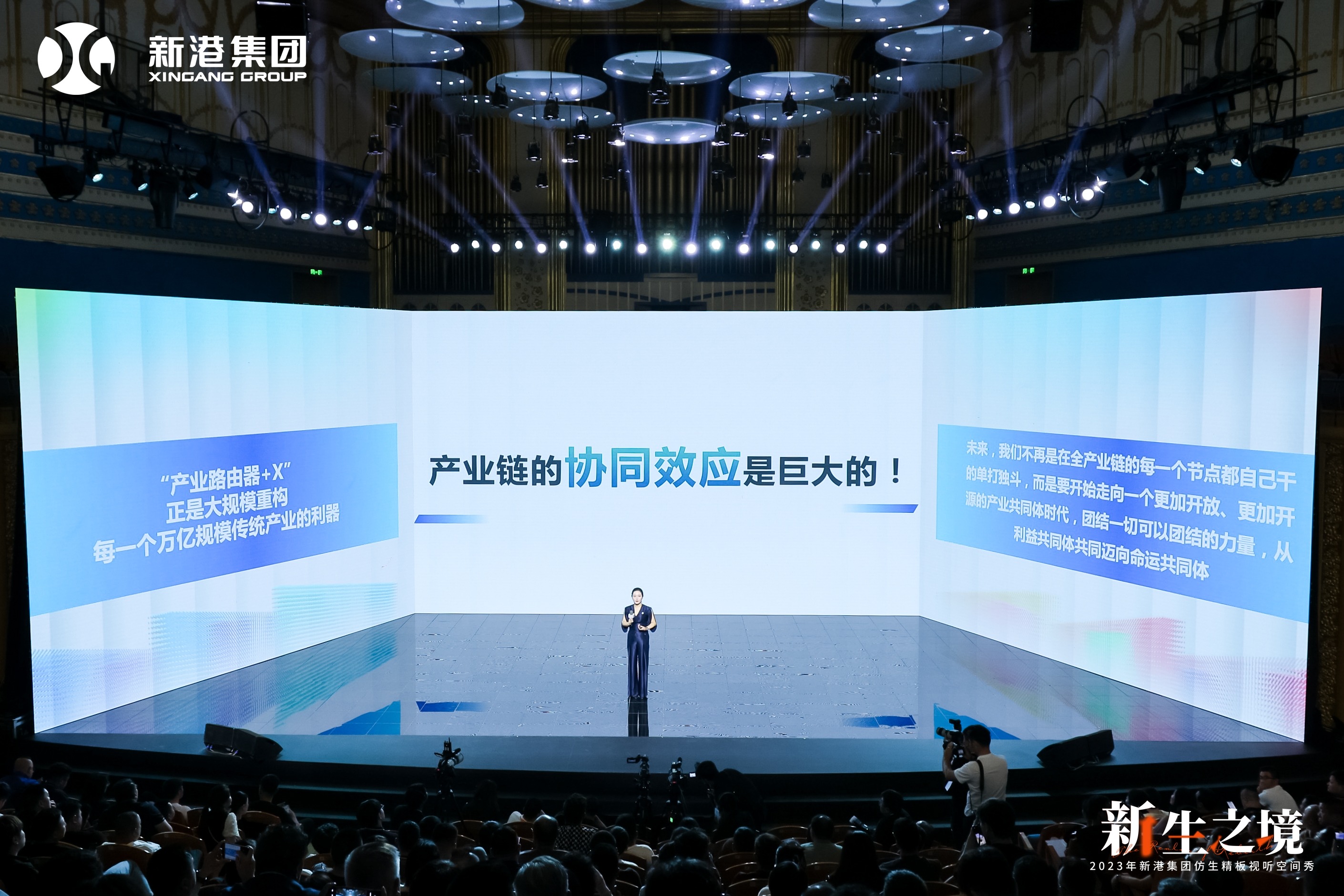 在九月的山東臨沂大劇院音樂廳,一場關于產品的視聽盛宴已經登場。9月16日,“新生之境·2023新港集團仿生精板視聽空間秀”在山東臨沂大劇院音樂廳精彩上演。新港集團與央視著名主持人陳偉鴻共同揭開了新港仿生精板系列產品的神秘面紗,并重磅推出了全新的精板運營模式。