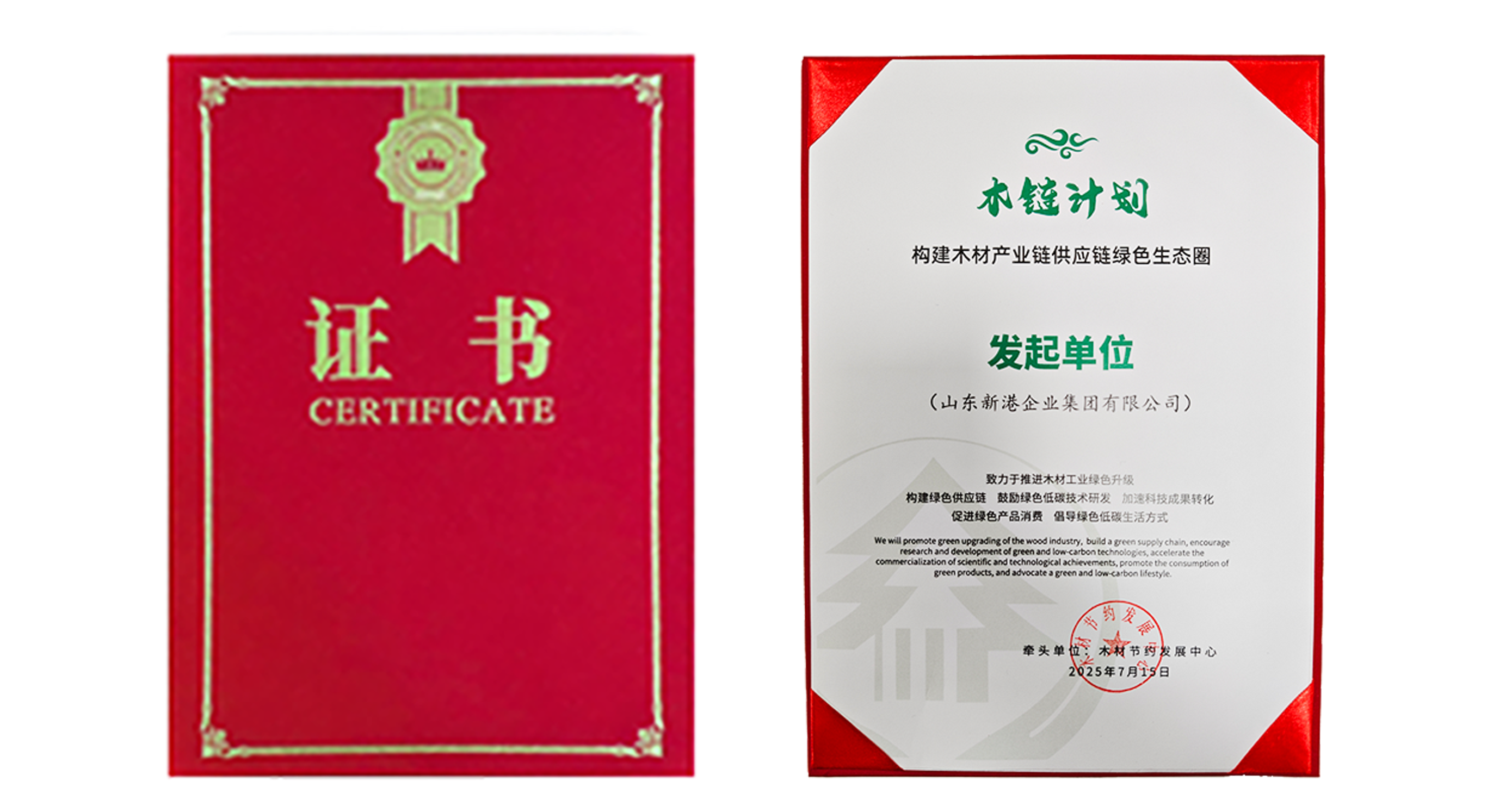 在大會的重要環節中,新港集團憑借在木材產業鏈供應鏈綠色發展方面的突出貢獻和積極探索,被授予“木鏈計劃?構建木材產業鏈供應鏈綠色生態圈發起單位”稱號。