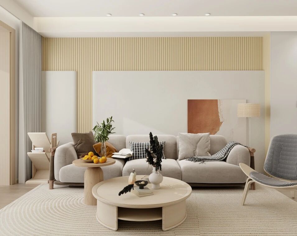 地板、家具等盡量選擇相近色系,減少視覺分割感,淺色系+同色延伸,空間感拉滿,視覺上放大一倍!護墻板格柵設計,拉高視覺比例,臥室顯得更高更寬敞! 靈感花色: XGC303云灰、XGC305卡其,質樸自然,打造溫馨浪漫、柔和舒適的生活氛圍。