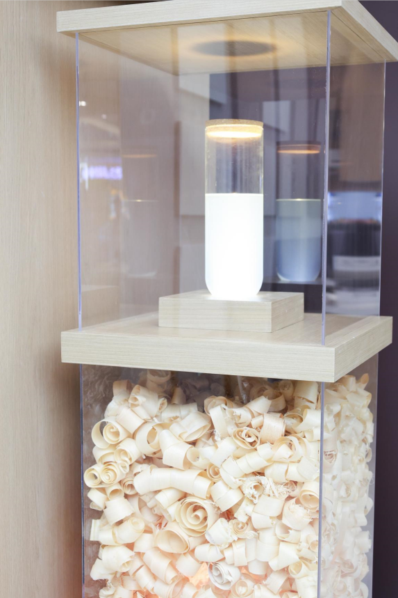 走進新港仿生精板·定制家城市展廳,人們總是會被這個“亮晶晶”,透亮無暇的“膠水”吸引,這便是消費者近期廣泛熱議的“家居環保神器”——新港仿生膠。