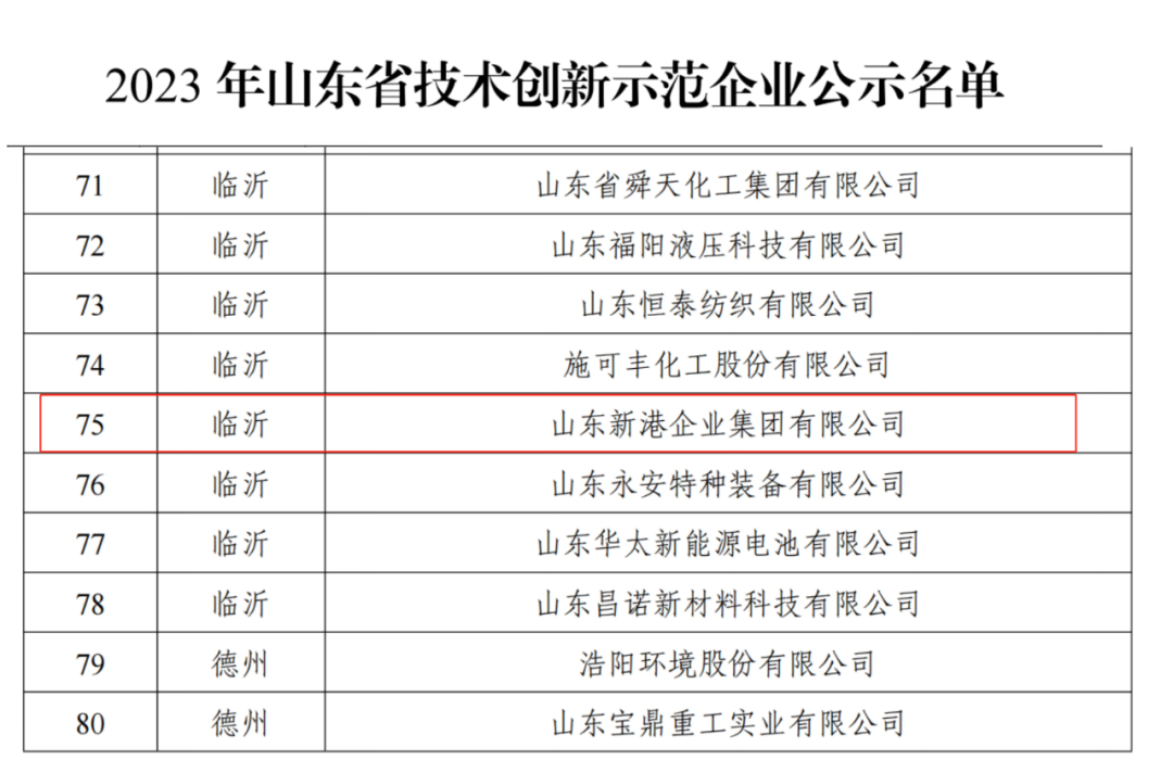 熱烈祝賀新港集團入選2023年山東省技術創新示范企業