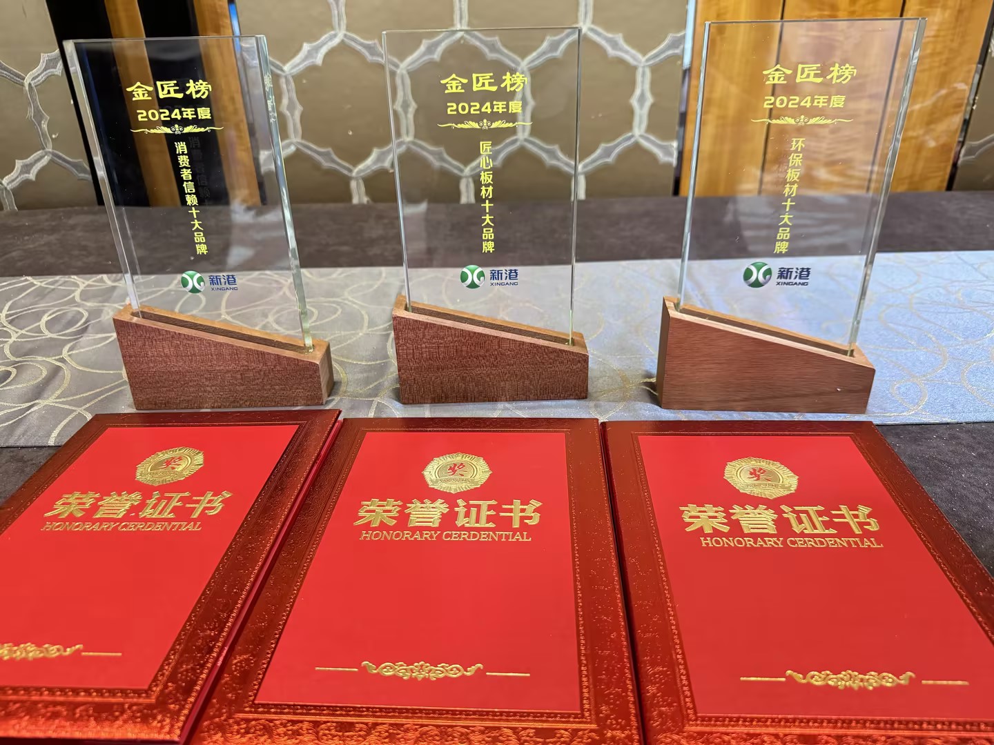 作為國內領先的板材制造企業,新港集團以超強的人氣與卓越的產品質量,被授予2024年中國板材金匠榜“環保板材十大品牌”、“消費者信賴十大品牌”、“匠心板材十大品牌”多項榮譽稱號。