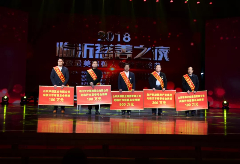 2018年1月25日,2018“臨沂慈善之夜”,新港集團捐贈100萬元。